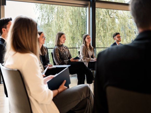 Lerne die Bank und die anderen Trainees während der Onboarding-Tage und einem dreitägigen Workshop kennen.