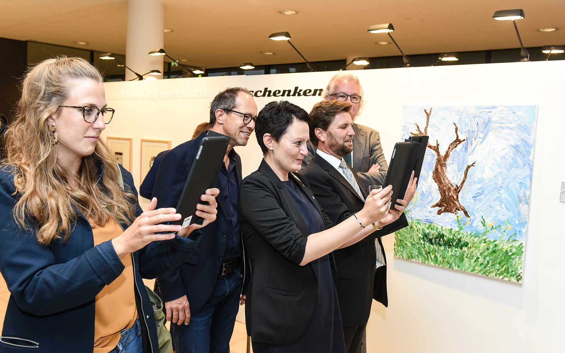 Das Preisträgerwerk sowie die weiteren Ankäufe im Rahmen des 10. Kunstpreises der Hypo Vorarlberg, sind in unserer Zentrale in Bregenz bis einschließlich 25.10. während den Filialöffnungszeiten zu besichtigen. Erstmals ist zudem eine Auswahl der Exponate vor Ort digital erlebbar.