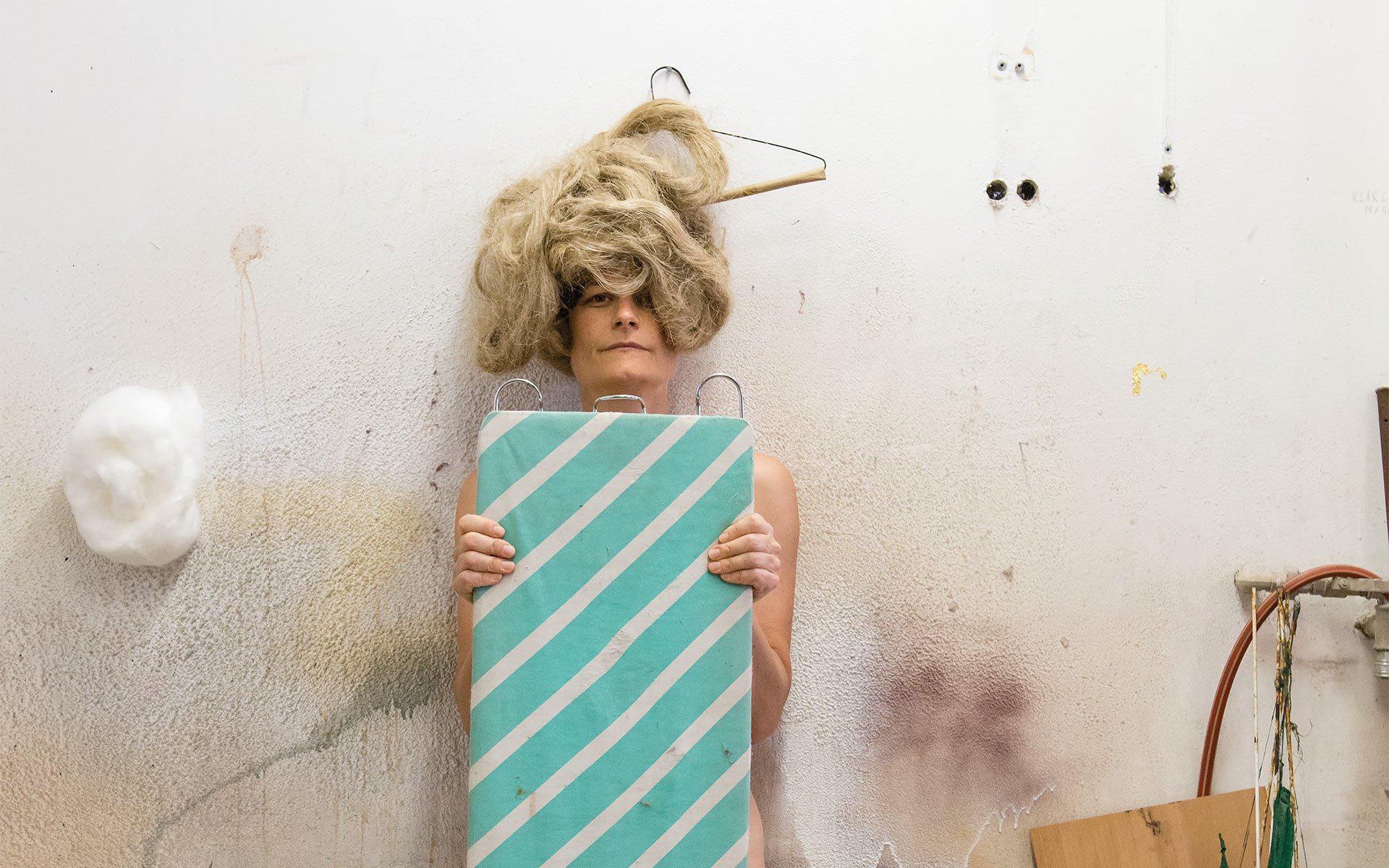 Dieses Jahr überzeugte Christine Lederer mit ihrem Digitalprint „Am liebsten trage ich ein Bügelbrett“. Geboren 1976 in Bludenz, studierte Lederer Kommunikationsdesign in Augsburg und Bildhauerei an der Akademie der Bildenden Künste in München und ist seit 2013 als freischaffende Künstlerin tätig. „Am liebsten trage ich ein Bügelbrett“ entstand in einer intensiven Auseinandersetzung Lederers mit der Sozialisierung als Frau in unserer Gesellschaft und für die Ausstellung „Alle Frauen sind immer daheim“ in der Galerie Hollenstein in Lustenau (2018).