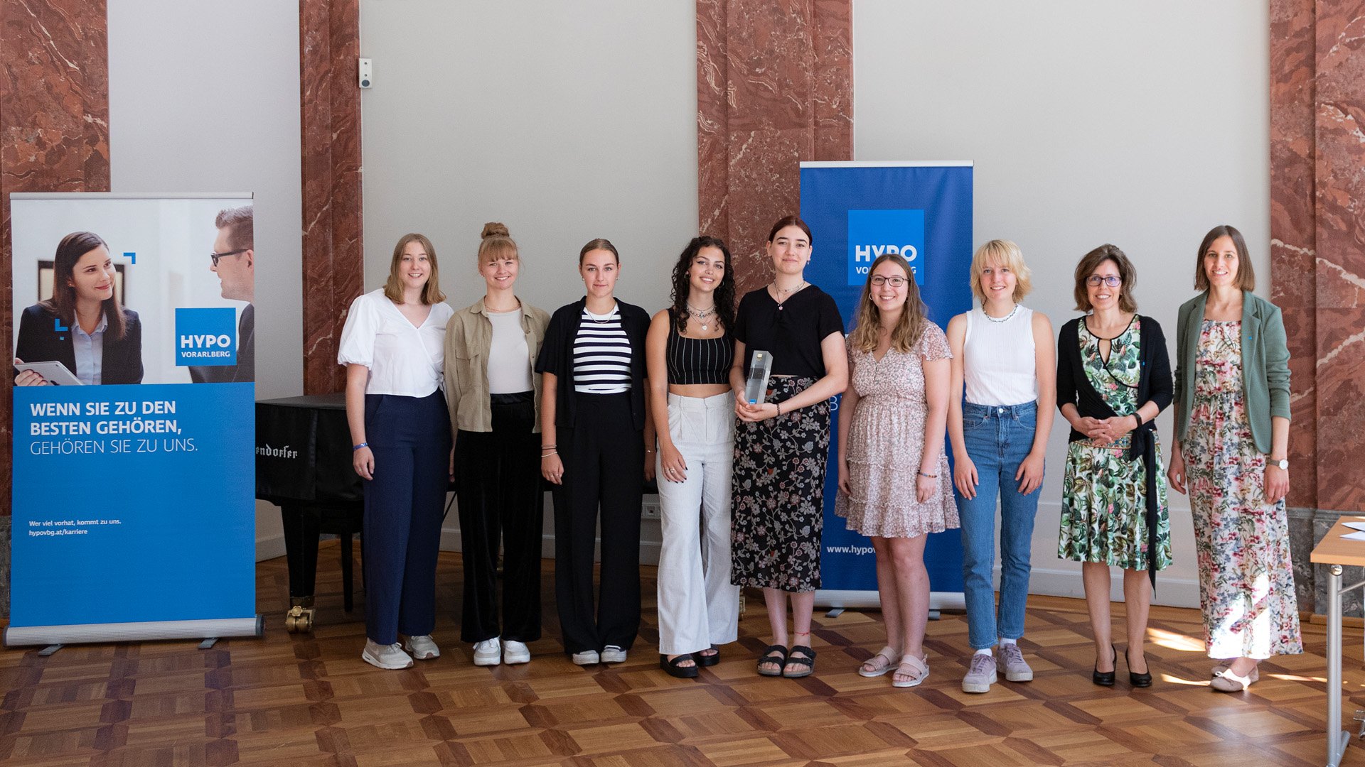 Am 30. Juni wurde die wohlverdiente Auszeichnung im hauseigenen Landtagssaal von Andreas Kappaurer (Pädagogischer Leiter, Bildungsdirektion Vorarlberg) und Beatrice Pitsch (HR Business Partner, Hypo Vorarlberg) an acht junge Maturantinnen überreicht.