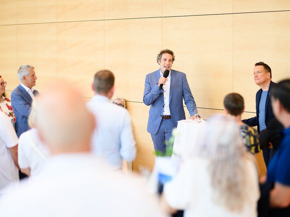 Stephan Bohle, Leiter des Private Bankings in Bregenz begrüßte gemeinsam mit Michael Csar, künstlerischer Leiter der Bregenzer Festspiele, die zahlreich erschienenen Gäste. Nach einem Überblick über die Entstehungsgeschichte, die Handlung und die Komposition des Werks, wurden im Zuge der Führung exklusive Einblicke gewährt und Geheimnisse der Inszenierung sowie technische Details erfahren.
