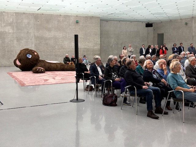 Im Anschluss an Anselm Grüns Ausführungen, wurden intensiv philosophische Ansätze rund um das Thema Geldanlage diskutiert sowie der Büchertisch und Signiermöglichkeiten ausgiebig frequentiert bzw. in Anspruch genommen. Darüber hinaus nutzen zahlreiche Gäste nach dem Vortrag die Möglichkeit, die aktuelle KUB-Ausstellung von Precious Okoyomon in geführten Gruppen zu besichtigen.