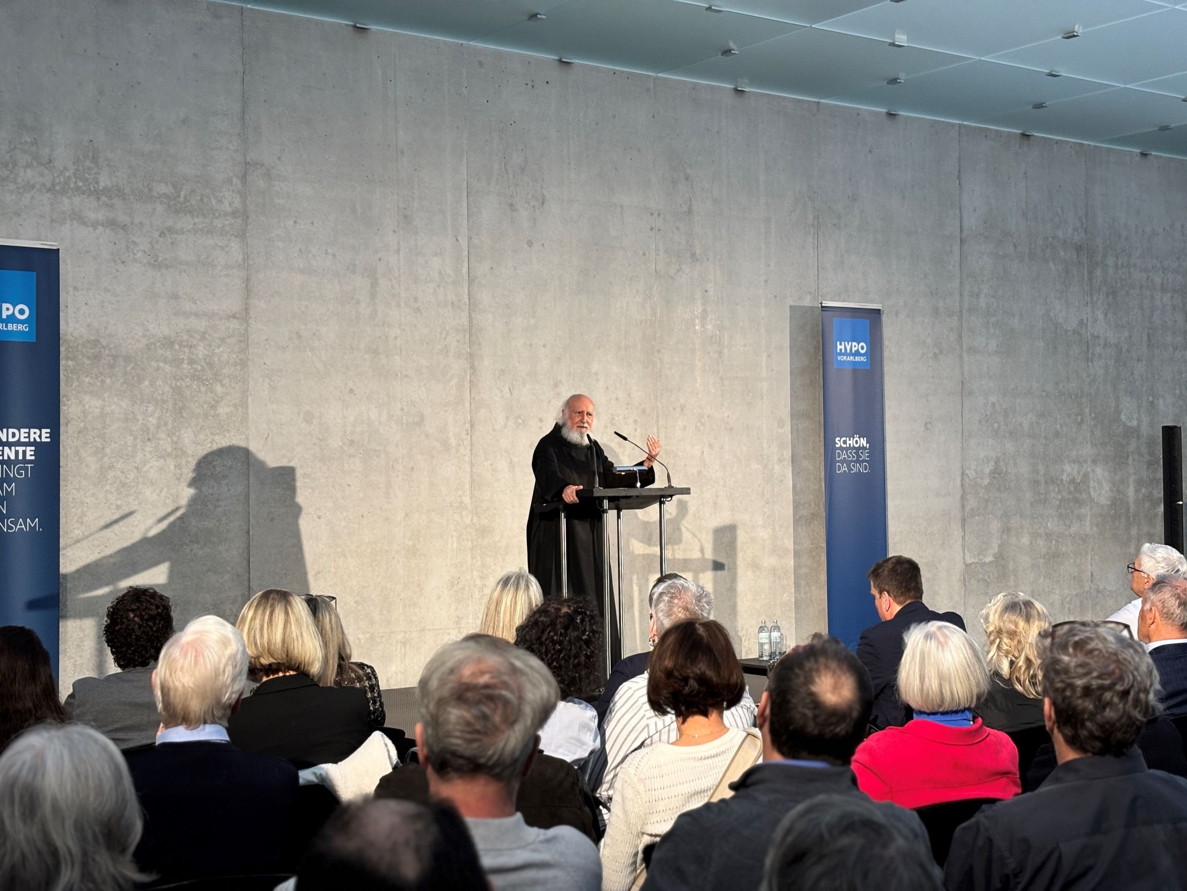 Die Veranstaltung der Hypo Vorarlberg Bregenz bot mit dem Zusammentreffen von Ordensbruder, Kundinnen und Kunden sowie Bankberatern eine anregende Verknüpfung scheinbar gegensätzlicher Welten. Aus diesem Miteinander entstanden neue Möglichkeiten über Geld nachzudenken und angeregt von Pater Anselm Grüns Vortrag, über dessen Rollen und Funktionen sowie Vermehrung zu reflektieren.