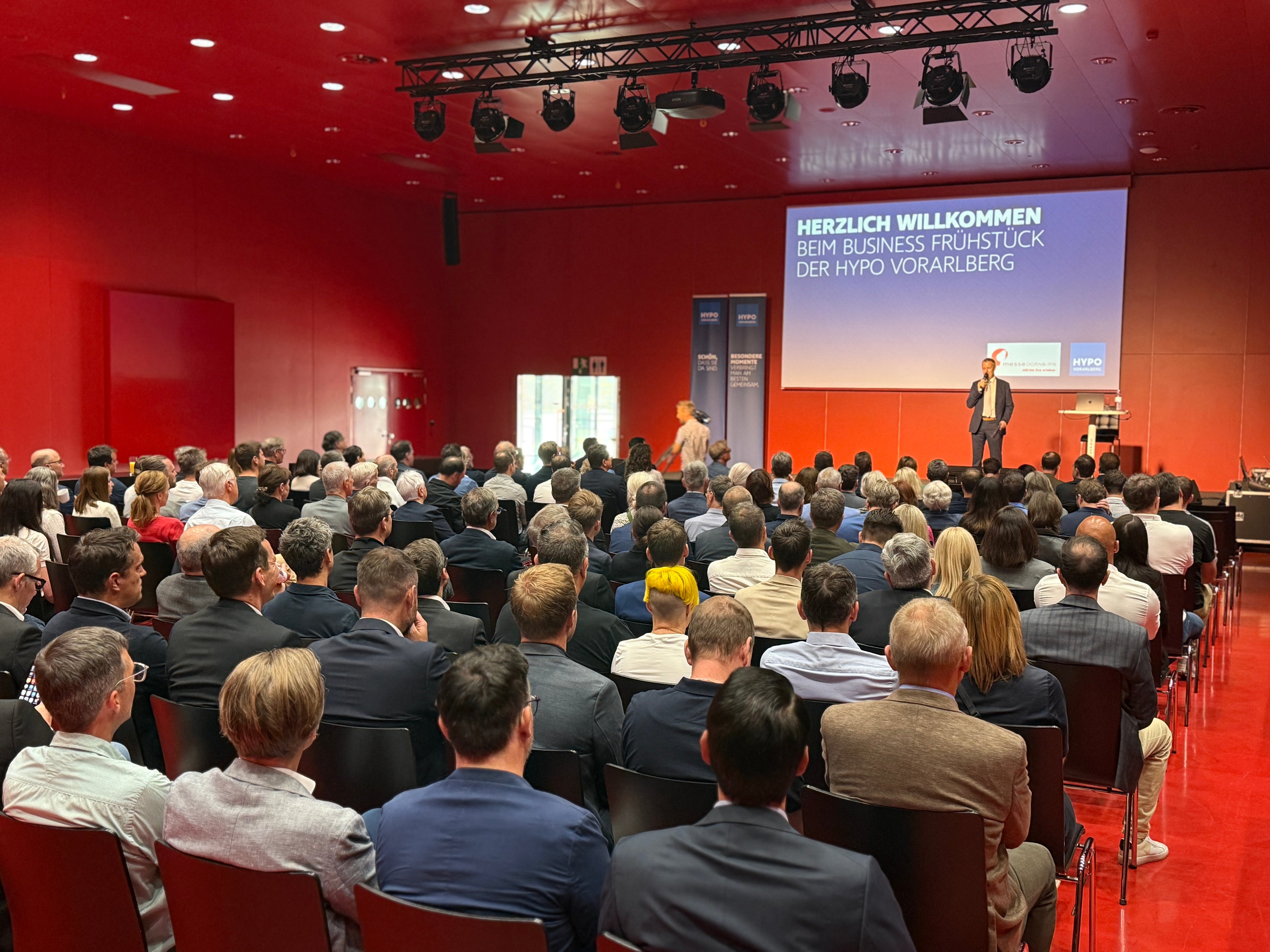 Begrüßt wurden die zahlreich erschienenen Firmenkundinnen und -kunden von Stephan Sausgruber (Vorstand, Hypo Vorarlberg) sowie Martin Dechant (Aufsichtsratvorsitzender, Messe Dornbirn). Beide zeigten sich erfreut über das große Interesse – und darüber, eine ganz besondere Persönlichkeit als Speakerin gewonnen zu haben.