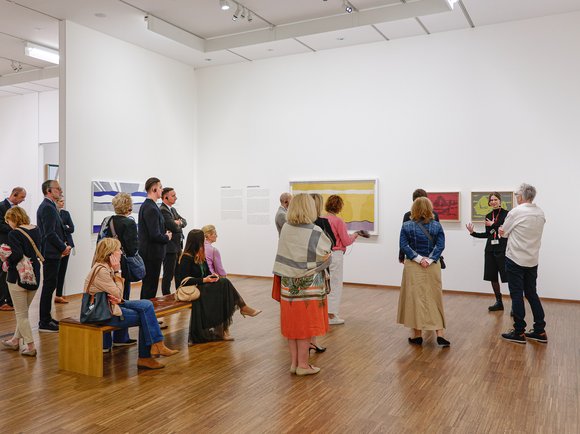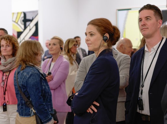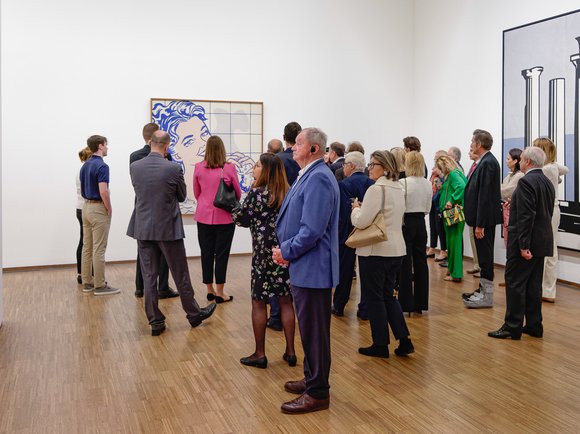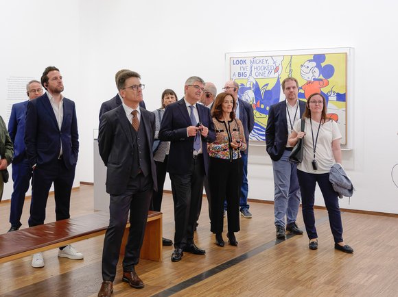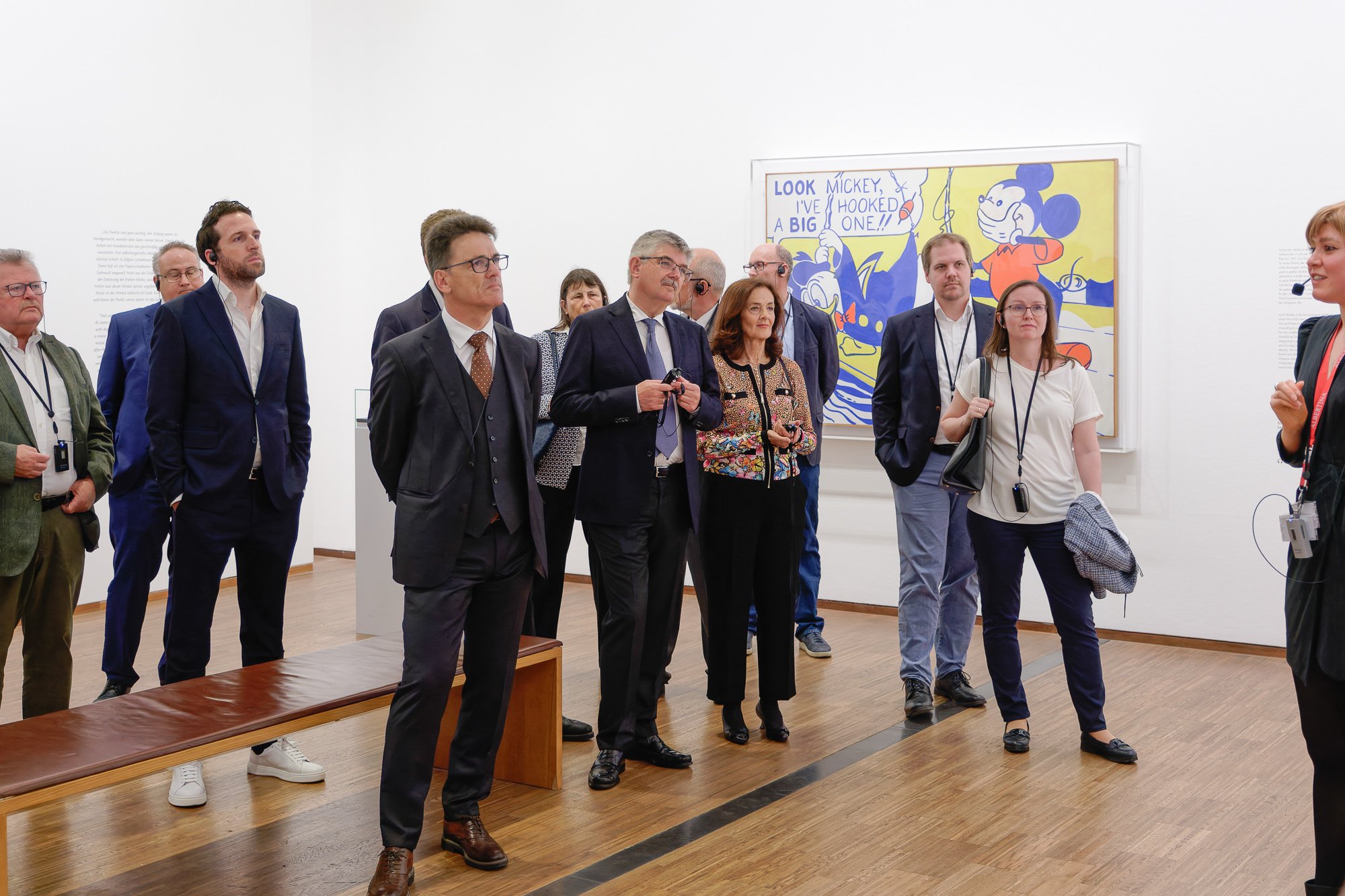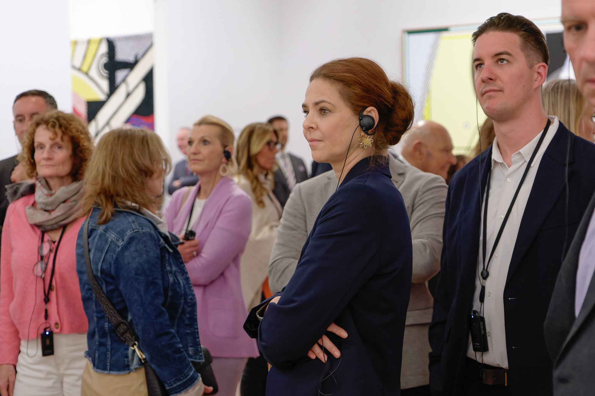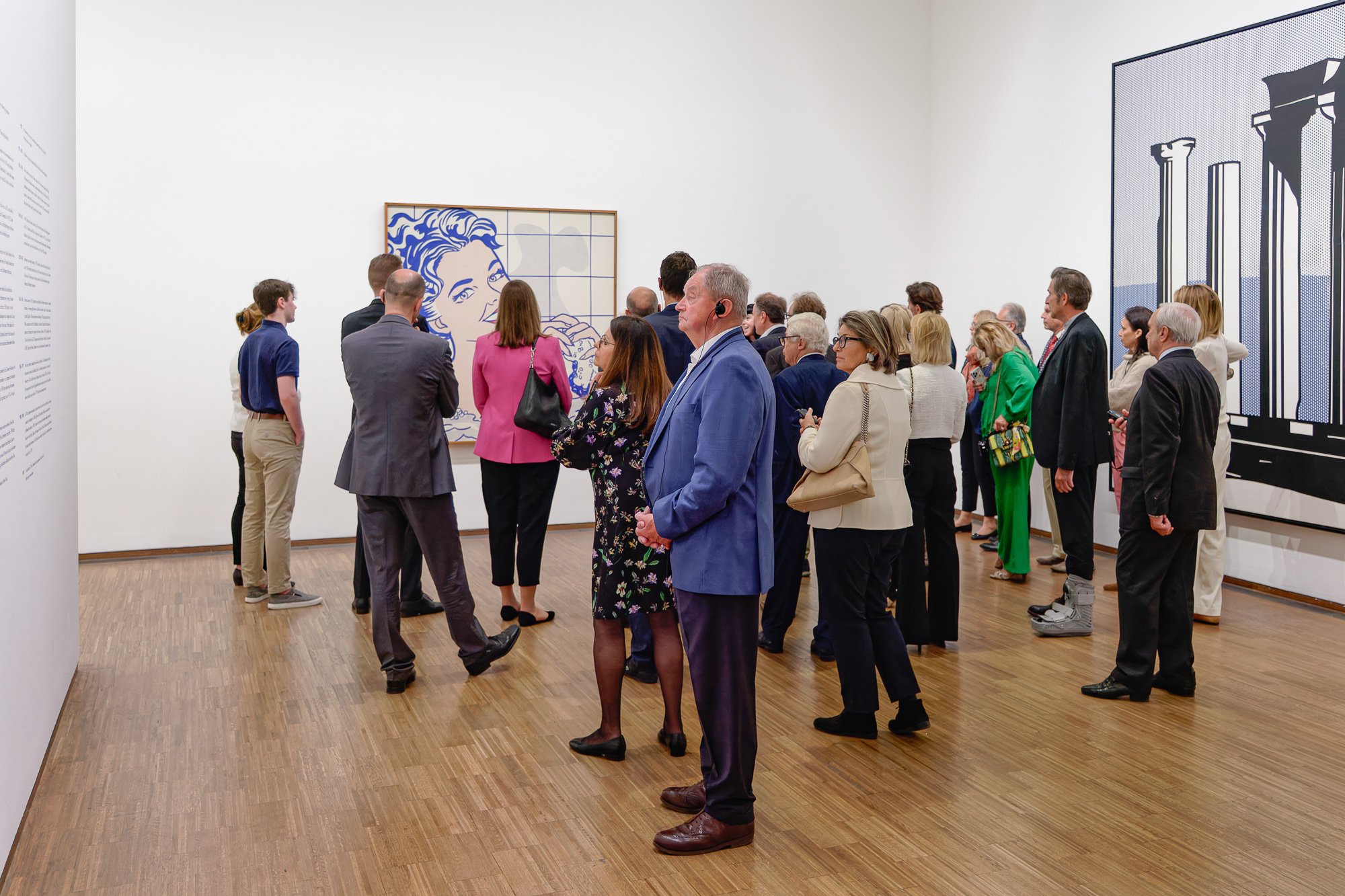 Der Abend startete mit einer Führung durch die Ausstellung von Roy Lichtenstein, die aktuell in der Albertina zu sehen ist. Die umfassende Retrospektive versammelt über 90 Gemälde, Skulpturen und Grafiken des US-Künstlers und wurde anlässlich seines 100. Geburtstages ins Leben gerufen. Lichtensteins bedeutendste Werke – darunter Leihgaben von 30 internationalen Museen – sind zu diesem Anlass aus aller Welt nach Wien gereist. Spannend waren die Erläuterungen zur Auswahl der Motive aus der Comic Welt. Die Werke des Künstlers sorgten während der Führung und auch beim anschließenden Empfang für ausreichend Gesprächsstoff bei den Gästen.