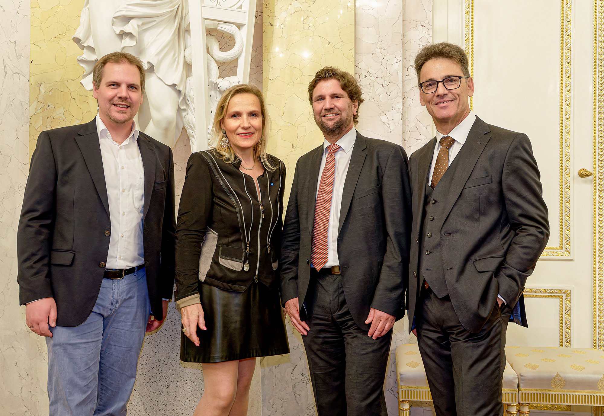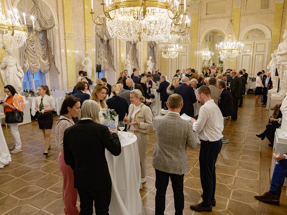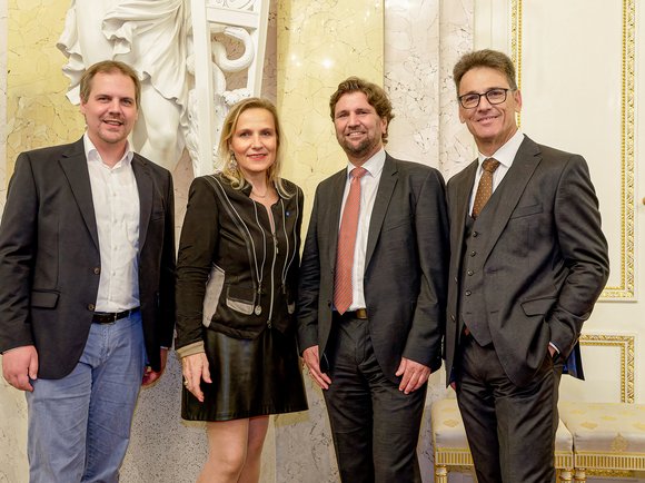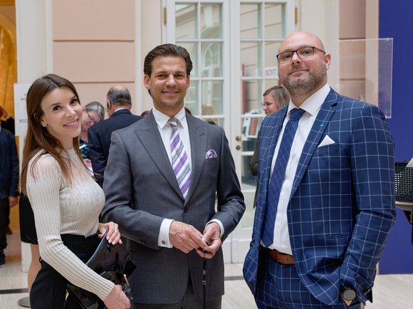 Vorstandsdirektor Michel Haller eröffnete anschließend den Abend in den Prunkräumen und sprach über den Stellenwert von beständigen Beziehungen – die es besonders in herausfordernden Zeiten zu pflegen gilt. Auch Roswitha Klein, Direktorin der Hypo Vorarlberg in Wien, freute sich, mit ihrem Team die Gäste zu begrüßen.