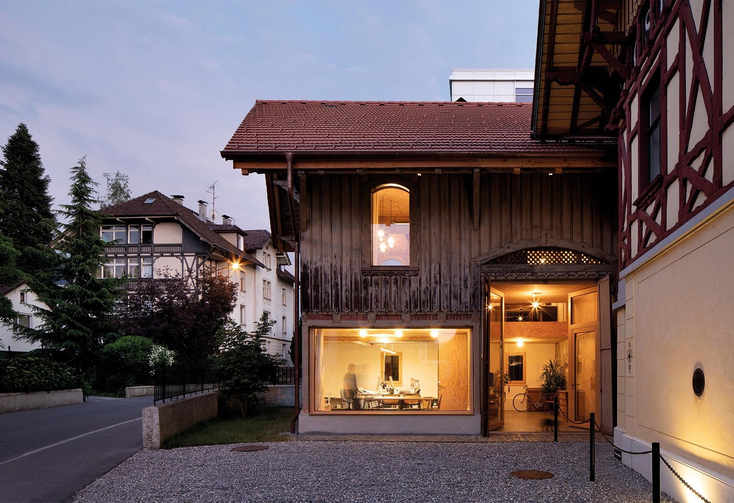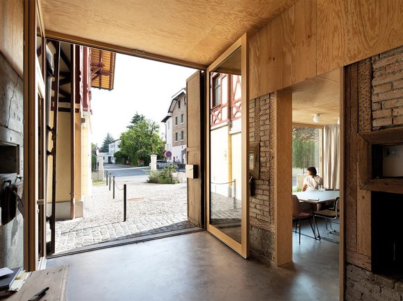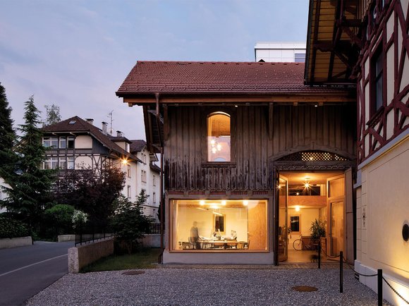 Eröffnet wurde die Tour mit dem Oeconomiegebäude Josef Weiss in Dornbirn. Bauherrin Julia Kick führte die begeisterten Gäste persönlich durch ihr Heim. 1997 entging das Gebäude dank eines Denkmalschutzes nur knapp dem Abriss. Heute fungiert das ehemalige Wirtschaftsgebäude als Wohnung und Atelier. Hinter der originalbelassenen Außenfassade wurde ein modernes Wohnen und Arbeiten mit Splitlevel in Form von Lufträumen, nutzungsoffenen Zwischenräumen und intimen Dachräumen verwirklicht – ein gelungener Balanceakt zwischen Innovation und Tradition.