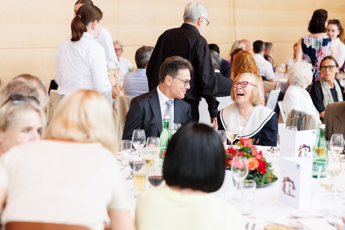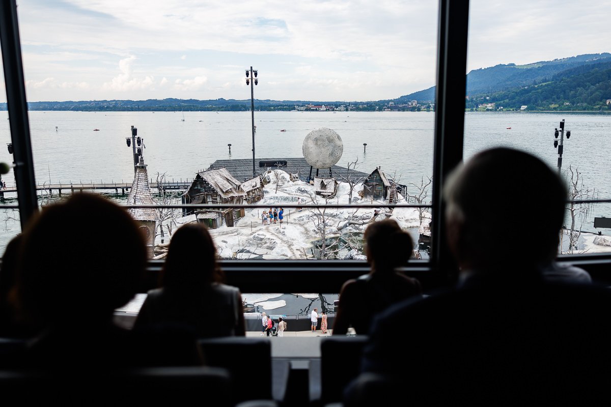 Beim anschließenden Festspieldinner mit exklusiver Künstlereinlage bezauberte „Ännchen“ mit einem Stück aus „Der Freischütz“ und mit „O mio babbino caro“, der weltbekannten Arie aus Giacomo Puccinis Oper Gianni Schicchi, die dieses Jahr im Theater am Kornmarkt zu sehen ist. Schließlich folgte die Aufführung auf der Seebühne vor der einzigartigen Kulisse des Bodensees. Die Inszenierung überraschte und begeisterte gleichermaßen: bunt, hochgradig postmodern, mit viel Ironie und „teuflisch gut“.