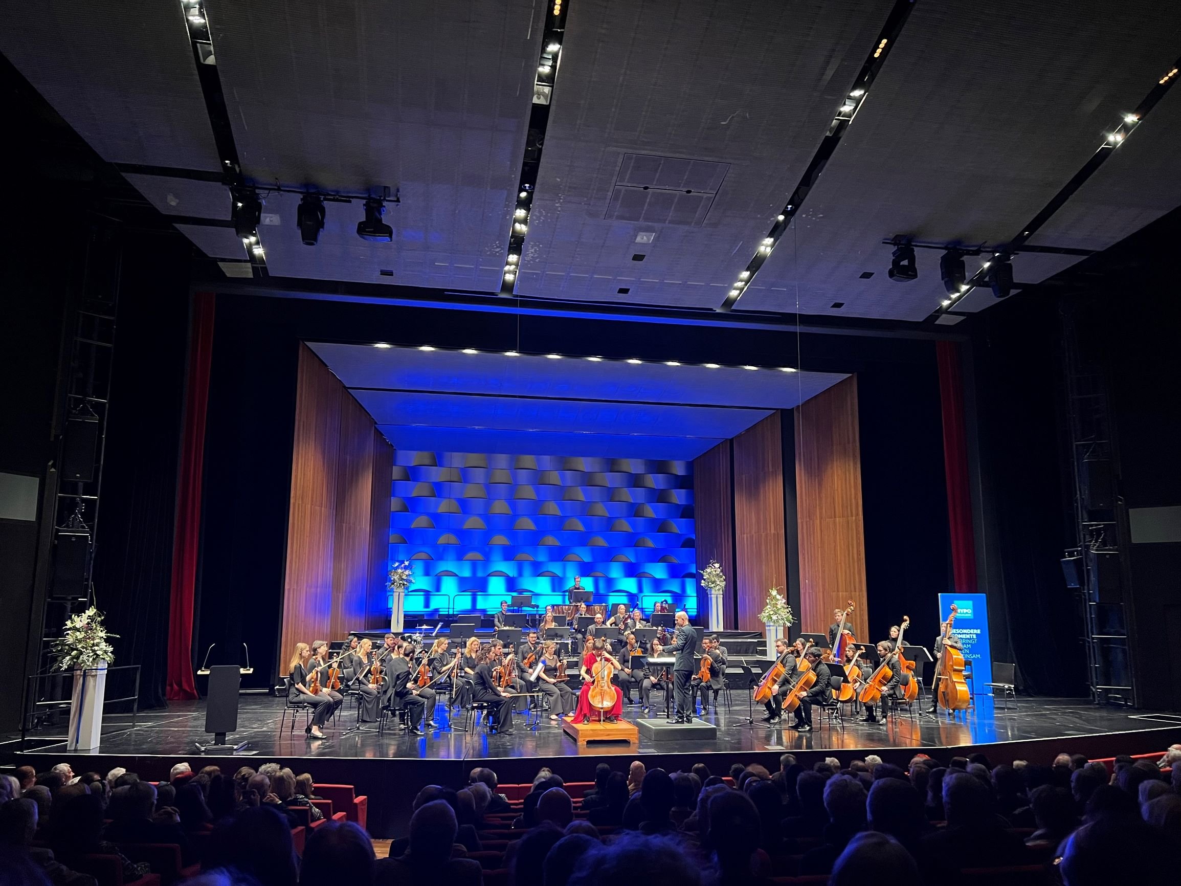 Das Konzert für Violoncello und Orchester Nr. 1 Es-Du op. 107 vom russischen Komponisten Dmitri D. Schostakowitsch lebt von frischen Rhythmen und vielen Akzentverschiebungen. Das Werk wurde von der Solistin Ida Riedel und den jungen Musikerinnen und Musikern des Sinfonieorchesters imposant dargeboten.