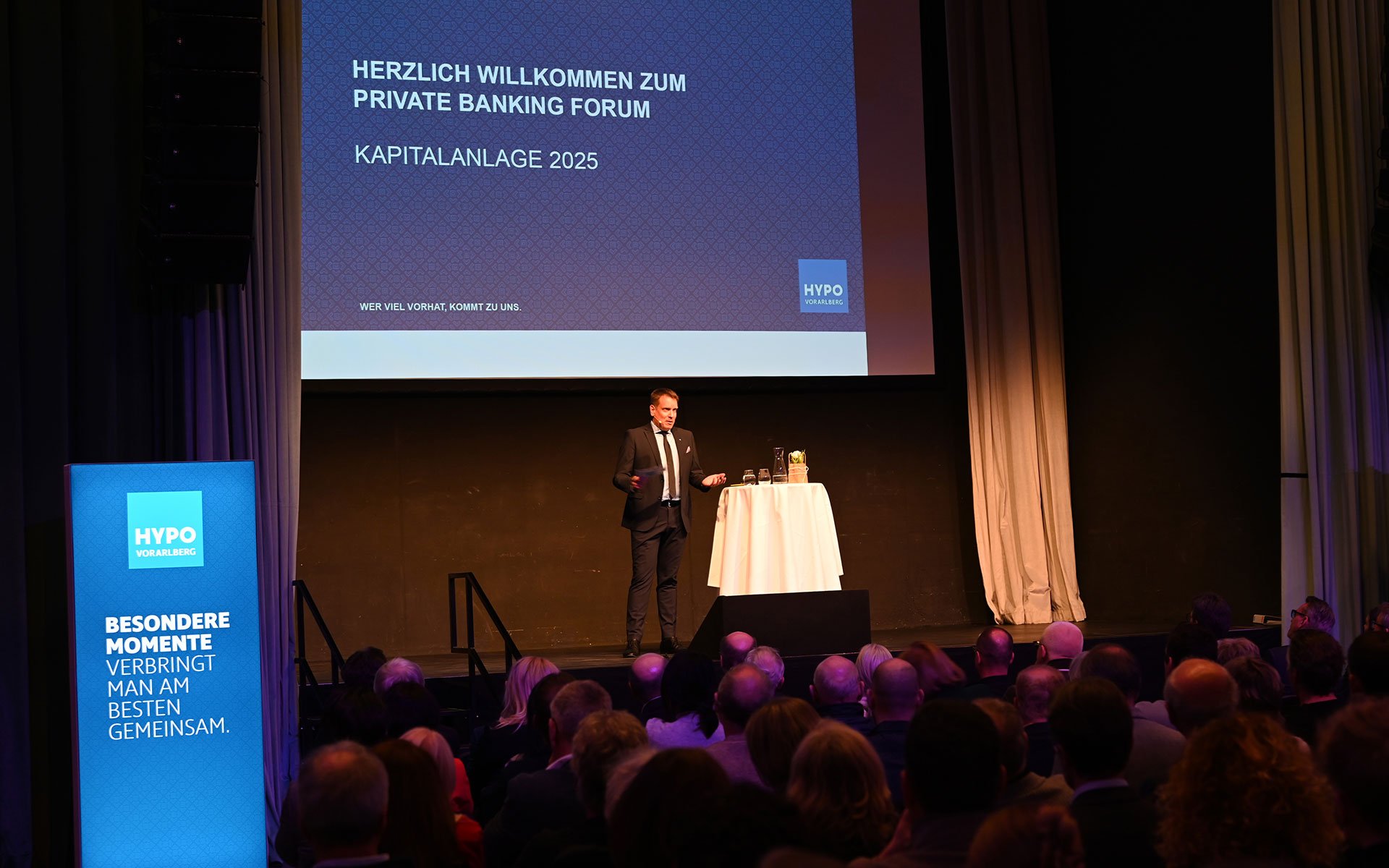 Stephan Bohle, Leiter des Private Bankings in Bregenz, führte nicht nur souverän durch den Abend, sondern brachte auch die wichtige Kundensicht mit in die Diskussion ein, nachdem Wilfried Amann, Vorstand der Hypo Vorarlberg, die Gäste begrüßte. Der Ökonom Johannes Müller konnte in seinem hochinformativen Vortrag zahlreiche Fragen der Gäste beantworten, bevor die anschließende angeregte Diskussionsrunde Raum für weitere Erörterungen bot.