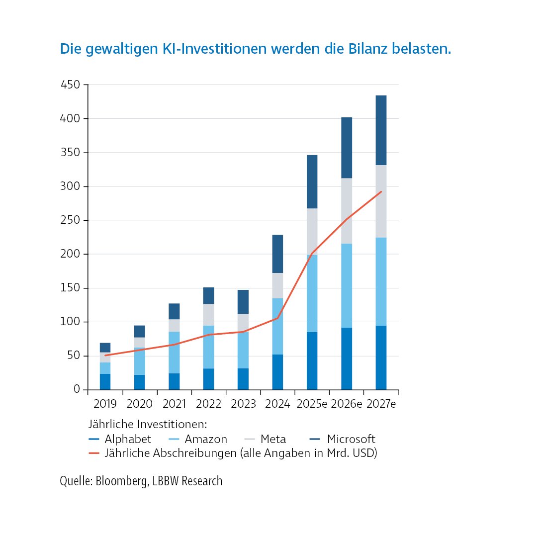 Obwohl sich das globale wirtschaftspolitische Umfeld verschlechtert hat, liegen die Aktienindizes deutlich über dem Vorjahresniveau,. Ein wesentlicher Treiber war die Erwartung rund um Künstliche Intelligenz. Gleichzeitig wirft die Finanzierung der hohen Investitionen zunehmend Fragen auf.