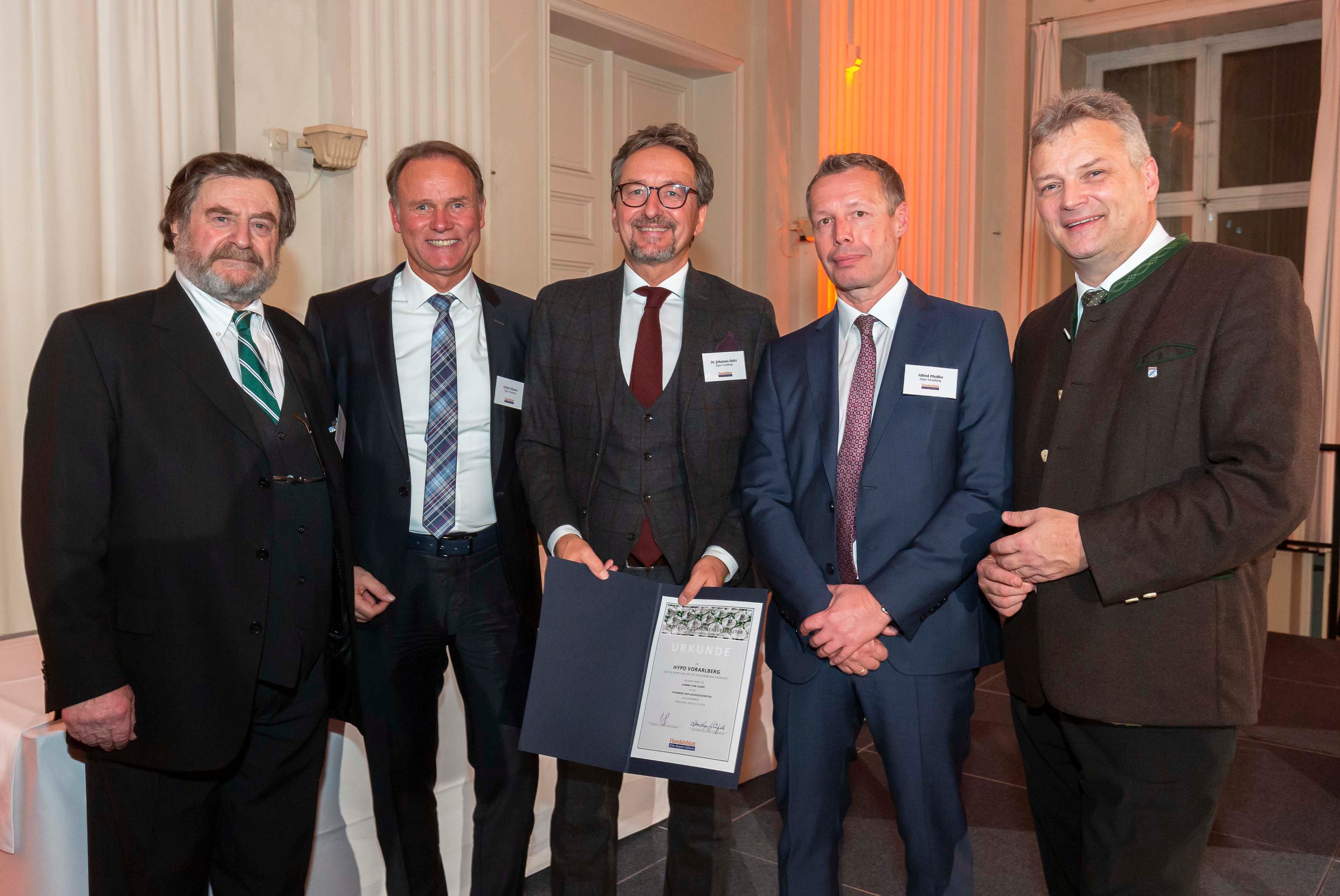 v.l.n.r.: Hans-Kaspar von Schönfels (Chefredakteur Elite Report), Artur Klauser, Vorstand Johannes Hefel, Alfred Pfeiffer (alle Hypo Vorarlberg) und Staatssekretär Roland Weigert. Foto: Elite Report
