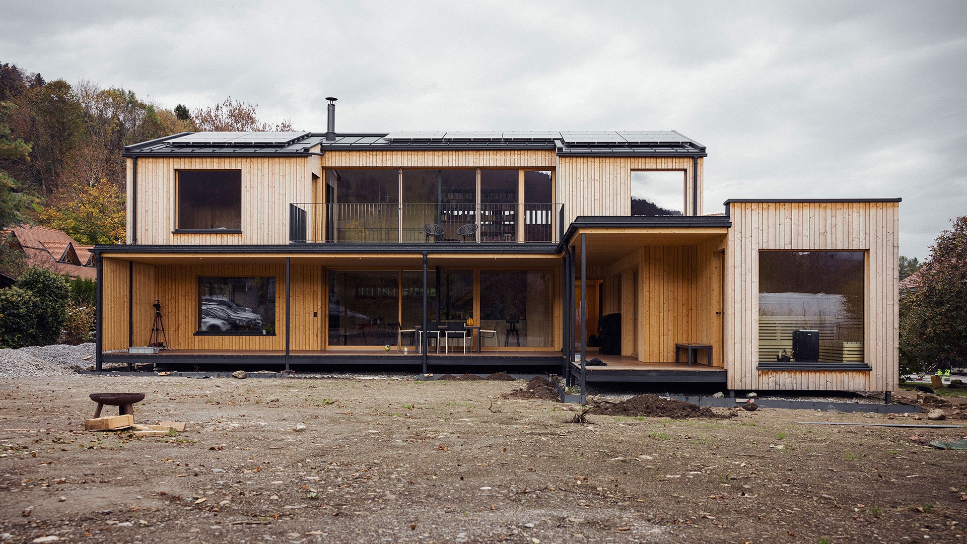 Einen Großteil der Arbeiten haben Agnes und Christopher selbst übernommen. Dank der Holzbauweise konnten auch Laien wie sie viele Arbeitsschritte selbst ausführen. „Es war anstrengend, aber auch sehr erfüllend“, erzählt Agnes. Die viele Zeit auf der Baustelle nutzte das Paar, um Ideen spontan umzusetzen – etwa einen Fensterplatz neben dem Kamin oder die gemütliche Galerie mit Bergblick.